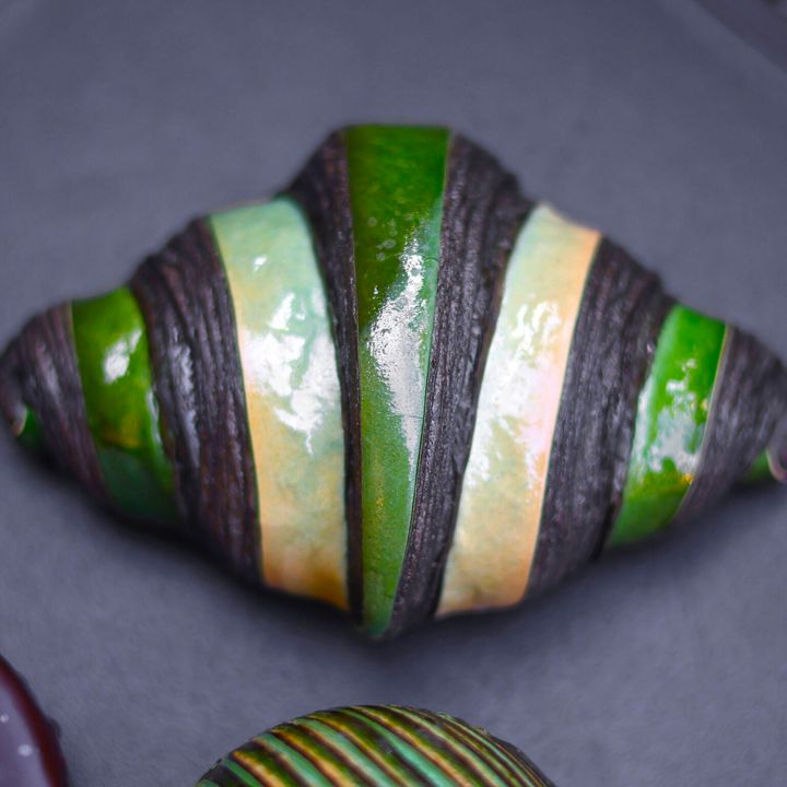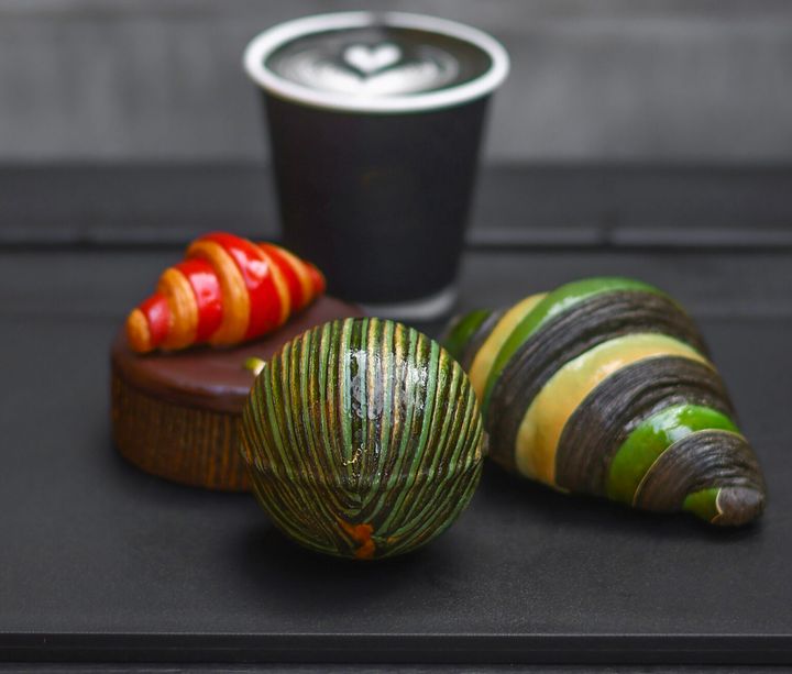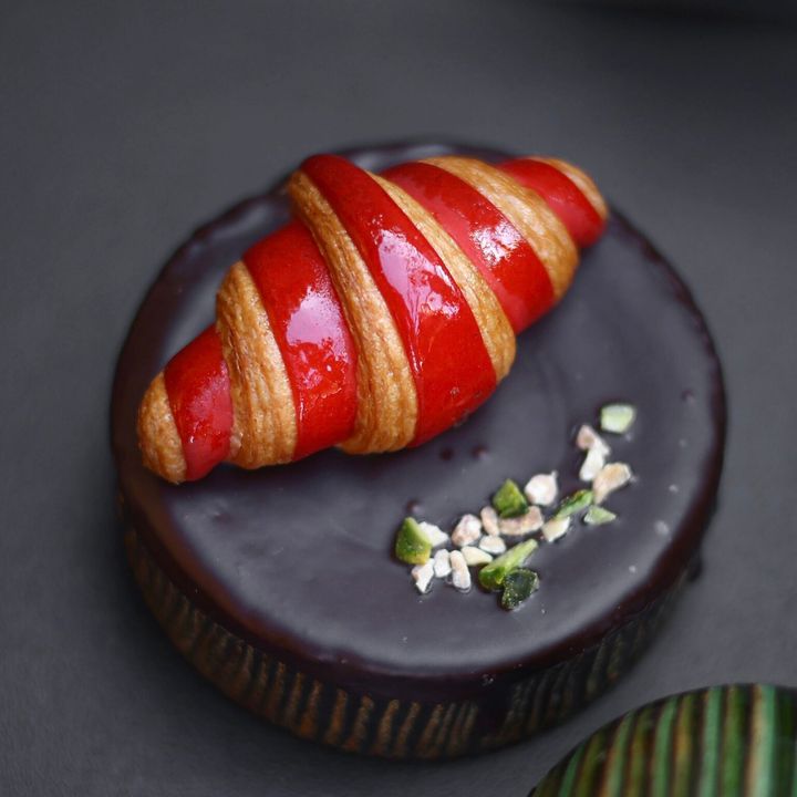 鮮やかな抹茶カラーと黒の2色から成るクロワッサン。見た目の美しさも然ることながら、何層にも渡ってパリッサクッと弾ける食感と、中に詰まった抹茶風味のカスタードクリームが奏でる絶妙な調和がなんとも心地のいい一品。