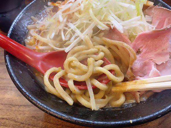 実際にいただいてみると、ビジュアルに反してお味はマイルドで食べやすかったです。二郎系のようなワシワシ麺と粘度のあるスープの相性は最高でした!