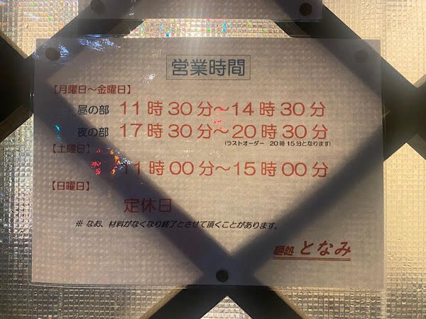 ◆麺処 となみ◆ 住所 〒271-0073 千葉県松戸市小根本51-5 営業時間 11:30~14:30、17:30~20:30(土曜日は11:00~15:00) 店休日 日曜日 駐車場 無 公式X https://twitter.com/mentonami39