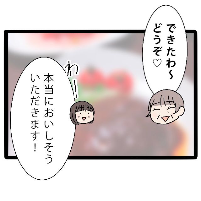 「恭一の好きなメニューたくさんあるのよ。我が家の味を覚えて欲しいわ~」という義母は恭一さんの好きなハンバーグを準備していました。早速「お手伝いします!」とアイ子さんが申し出るも、「今日はアイ子へのお詫びなんだからゆっくりしてて」と決して手伝わせてはくれず・・あいかわらずの意地悪さに怒りが・・
