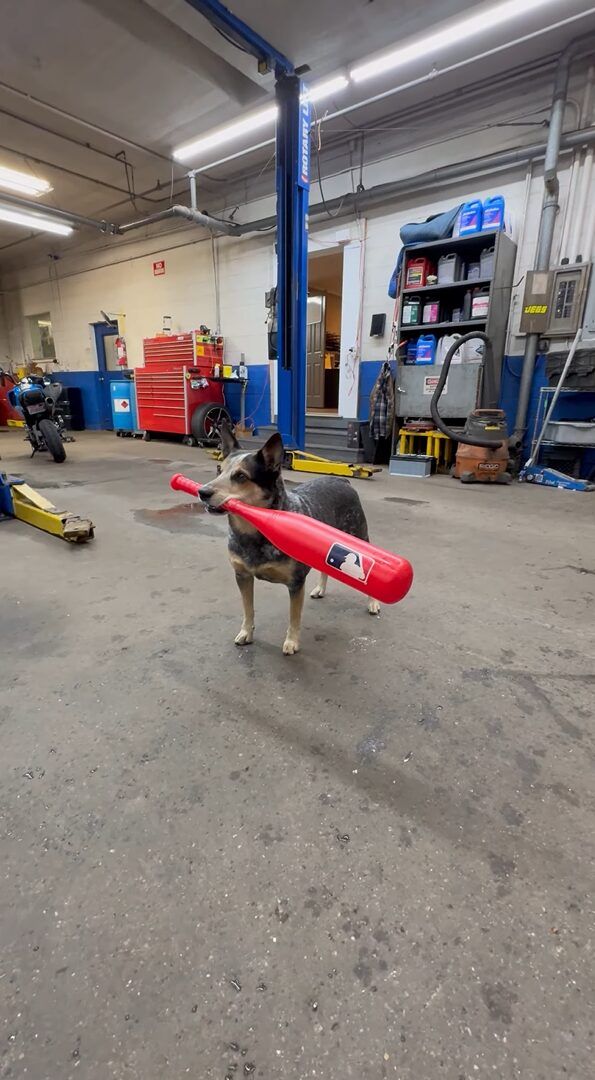3. バットをくわえた犬。この子に向かって雪玉を投げると・・ナイスヒット!!【アメリカ・動画】