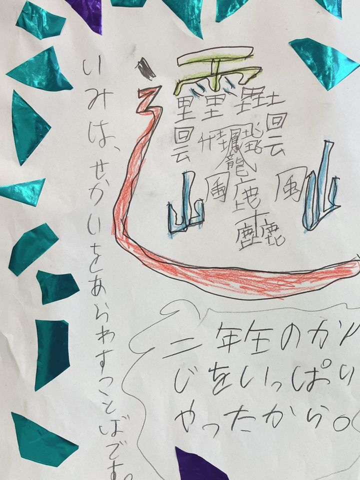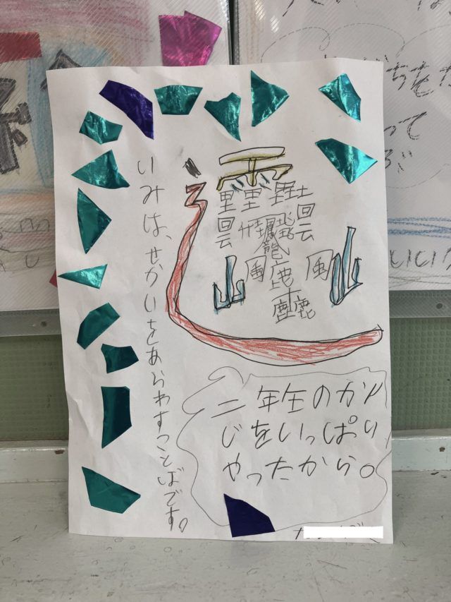そんな中、ひとつの作品に目が止まりました。ふざけたような、見たことのない漢字。でも、なんだかパワーを感じる! そして、その作者の主は、なんと、わが息子。
