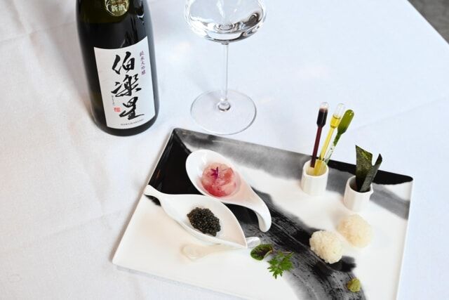 キャビアとアオリイカのタルタルをハーフ&ハーフで楽しんだり、アオリイカだけを味わえるほか、お酒のおつまみとしても大活躍。レストランでは、ソムリエが厳選する日本酒も多彩に用意される他、シャンパーニュやワインもそろい料理とのペアリングも楽しめます。