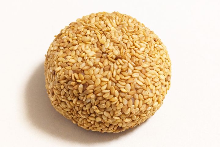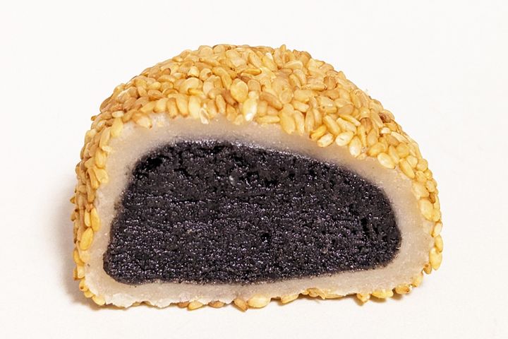 開封した瞬間、香ばしい胡麻の香りに癒されます。胡麻がびっしりなお団子は、中華料理屋さんで定番のアツアツの「胡麻団子」そのもの。チルドスイーツなので冷たいのですが、写真で見るとアツアツの胡麻団子にも見えます。