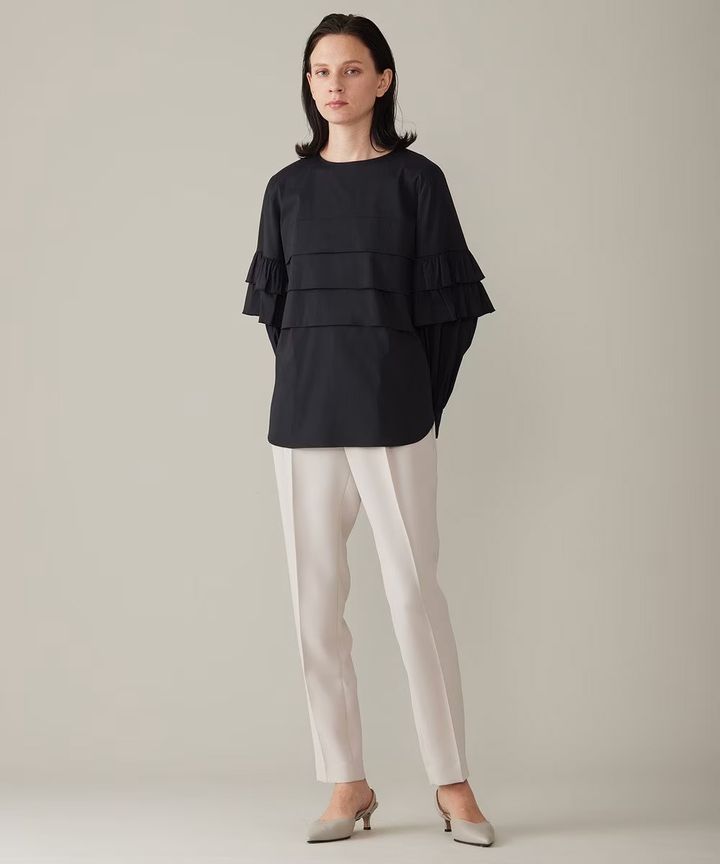 フリルがたっぷりついたブラウスなどの甘めデザインのトップスは、40・50代にはむずかしそうなアイテムですよね。