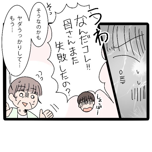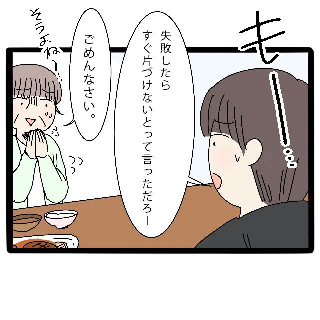 「もーー・・失敗したらすぐ片づけないと、って言っただろー」