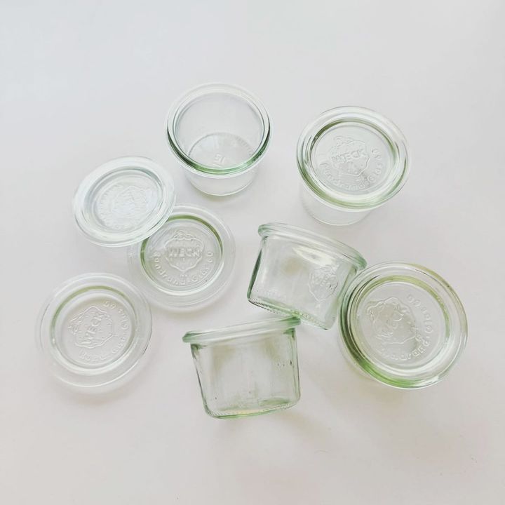 WECKのガラス容器。様々な形、大きさが揃っているのが便利で、ピクルスを漬けたり調味料を入れたりと長年愛用しています。今回使用したのは数年前にセリアで購入した75mLの小さめサイズ。