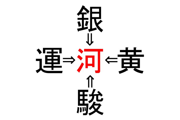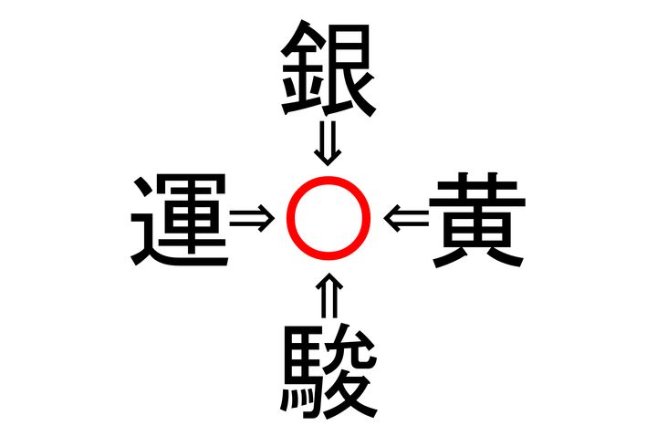 銀〇・黄〇・駿〇・運〇。 4つの〇に入る漢字は共通しており、それぞれ熟語を形成します。