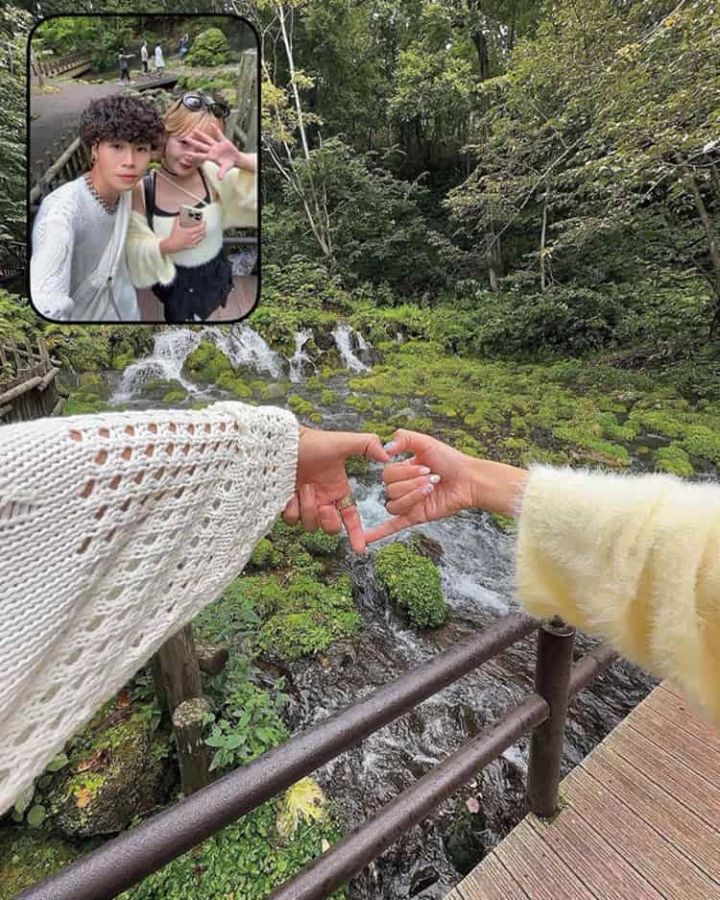 自分たちも内カメで写しつつ、大自然に向かって2人あわせてできるハートを作ったことがポイントです!
