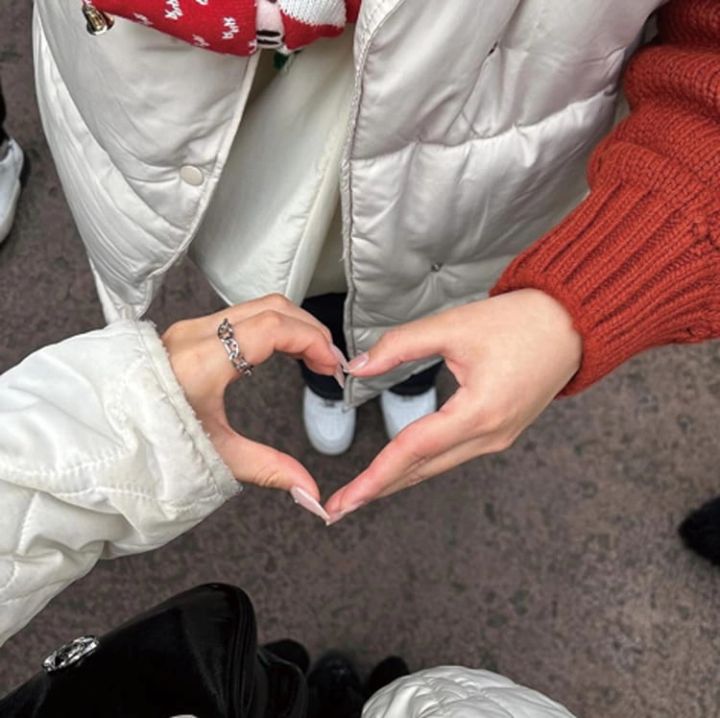 どんどん進化していくハートポーズは、今やバリエーションもさまざま。友だちと一緒に作るポーズだから、青春感も増し増し♡