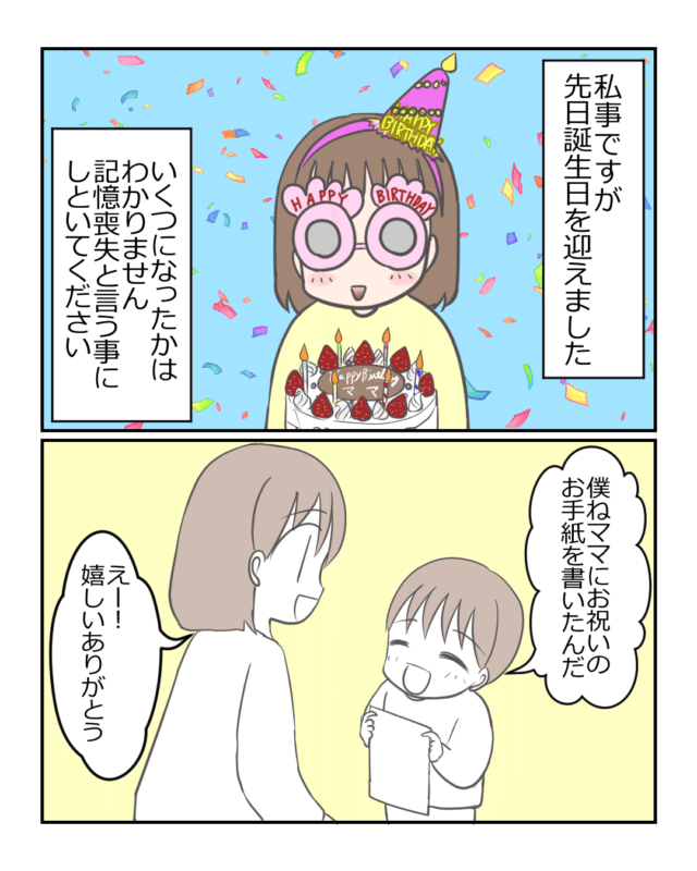 小1の男の子ねこ太くんのママである鳥野とり子さんから、先日とり子さんがお誕生日を迎えた時のお話が届きました。ねこ太くんからお祝いのお手紙をもらったそうなのですが・・なんと書いてあったのでしょうか?