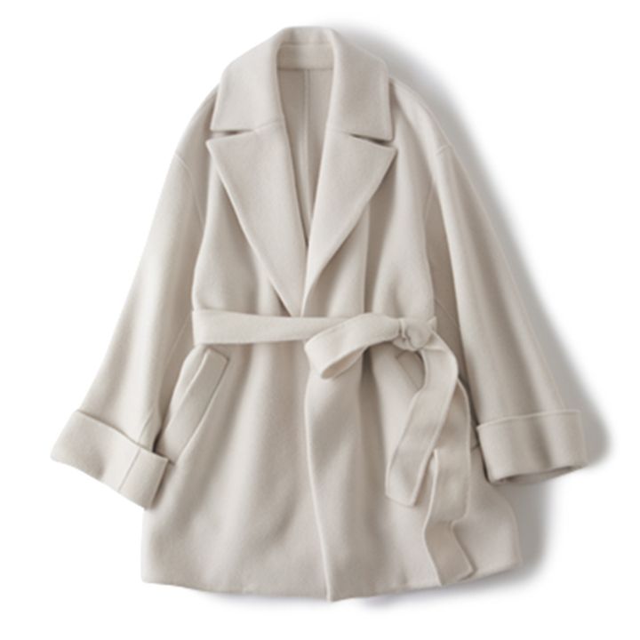 まだまだ寒いけど重く見せたくないなら、ミディアム丈&ホワイトのリバーコートをチョイス。¥53,900(アルページュストーリー)