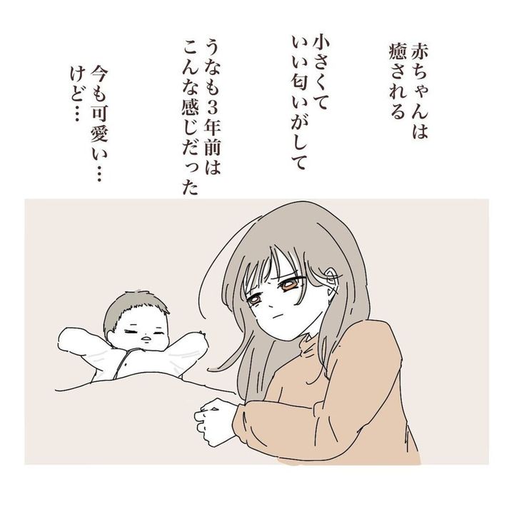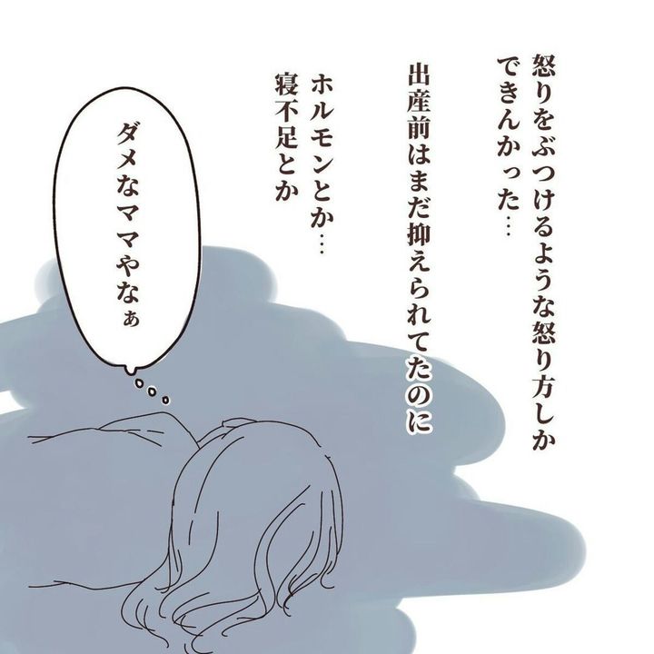 このお話の主人公であるまぎ.さんは2人目を出産しました。2人目の出産前に「下の子を産むと『上の子かわいくない症候群』というものになる人もいる」という情報を目にしましたが、当時は自分とはかけ離れた話だと思っていました。しかし2人目を出産してみると、上の子にイライラするシーンが増え、上の子に対し「かわいい」という気持ちを持てないことも。それから「こんな母親は最悪」という罪悪感や、「昔のように心の底からかわいいと思いたいのに」という葛藤が生まれ、まぎ.さん自身が追い込まれてしまいます。