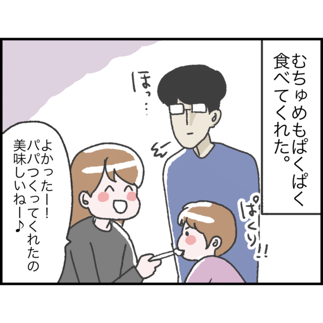 1歳女の子のママであるしおさんから、離乳食のお話です。ある休日、唐突にご主人が娘ちゃんの離乳食を作ってくれることになり・・・。