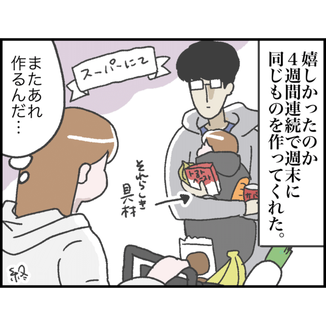 娘ちゃんがぱくぱく食べてくれたのが嬉しかったのか、4週間連続で週末に同じ離乳食を作ってくれたご主人でした。