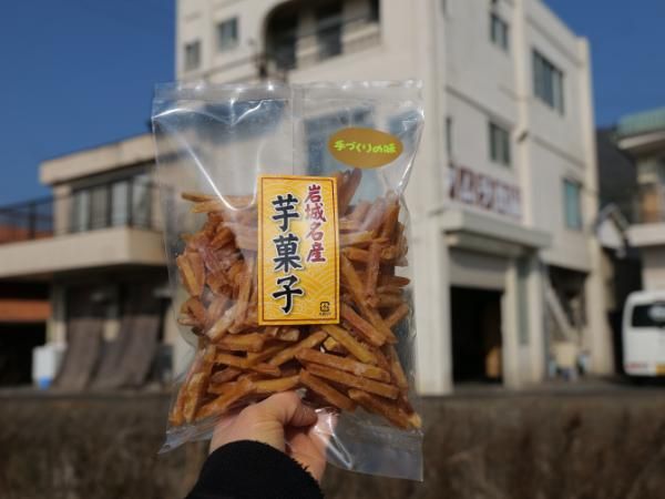 さて、この岩城島で「芋菓子」といえば、芋けんぴのこと。 岩城島のご当地銘菓として、付近の道の駅・スーパーなどでも芋菓子は並んでいます。