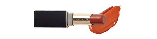 「こういうブラウンみのあるカラーについ手が伸びがちですね」。厚みのあるツヤの膜が、唇のフォルムをむっちりと際立たせ、 縦ジワなどのアラもさり気なくカモフラージュしてくれる。08 ¥5,830(SUQQU)