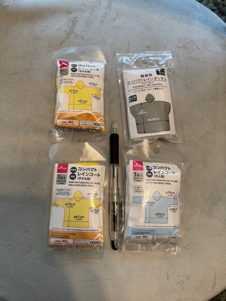 そして、驚くことに、ダイソーで見つけたレインコート、圧縮されて手のひらサイズなんです!!ビックリですよね!!防災リュックにかさばらないし、オススメです!
