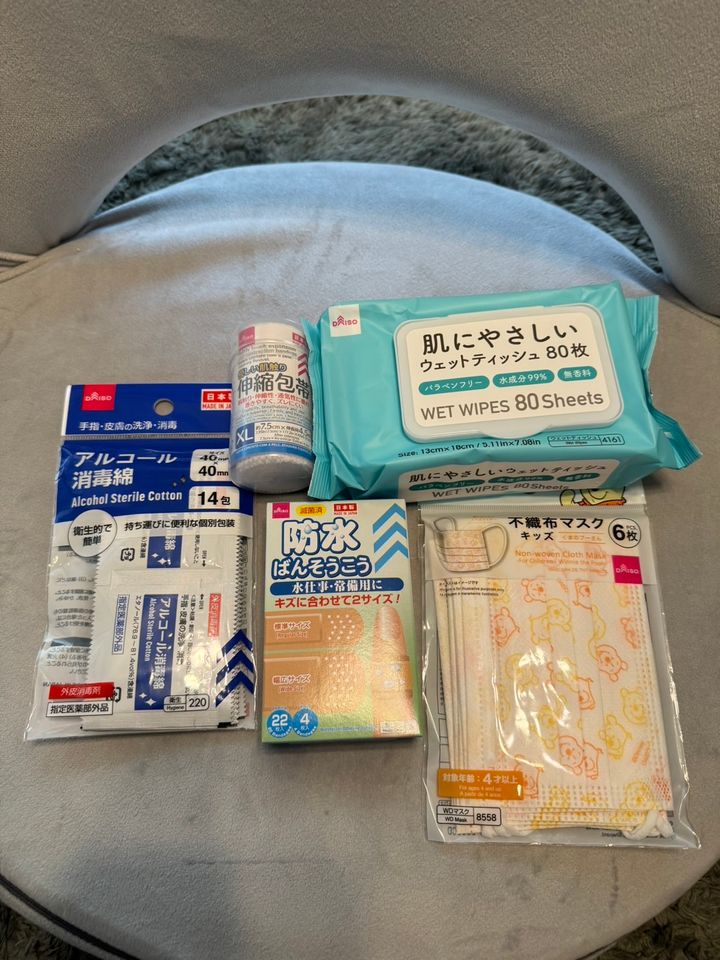 通常サイズではなく、ダイソーならではの小さいサイズや小分け商品があるので、防災グッズにちょうど良いなと。
