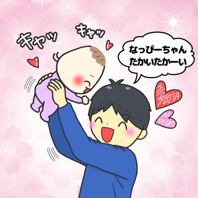 長男3歳けいぴーくんと長女1歳なっぴーちゃんのママであるさあやさんから、高い高いのお話です。パパに高い高いをしてもらって大喜びのなっぴーちゃん。そのとき・・・。