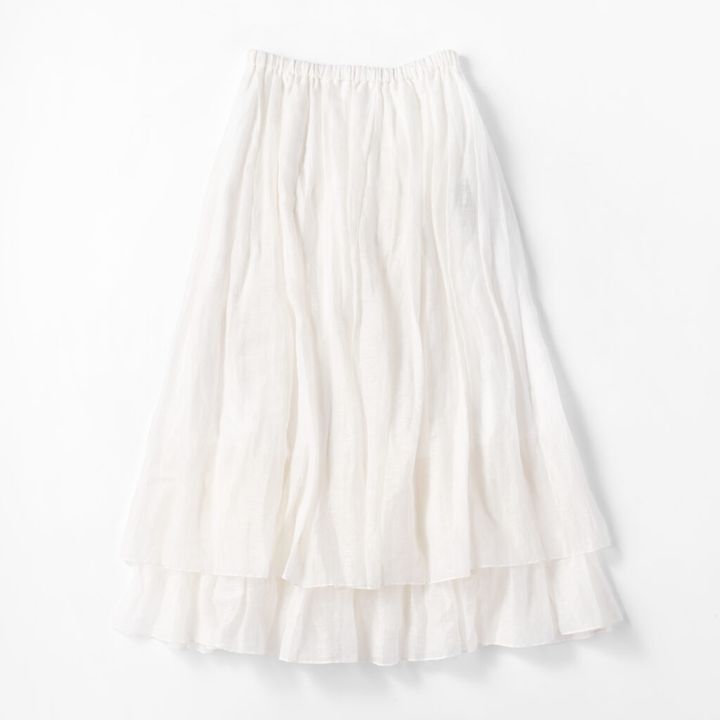 「贅沢に生地を使うことでボリューム感を出したティアードデザイン。生地自体が軽いので、ボリュームがあっても重い印象にならないのが魅力」(スタイリスト平沼さん)
