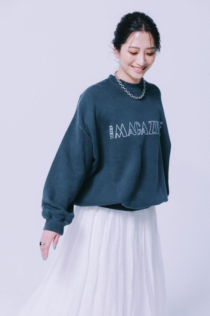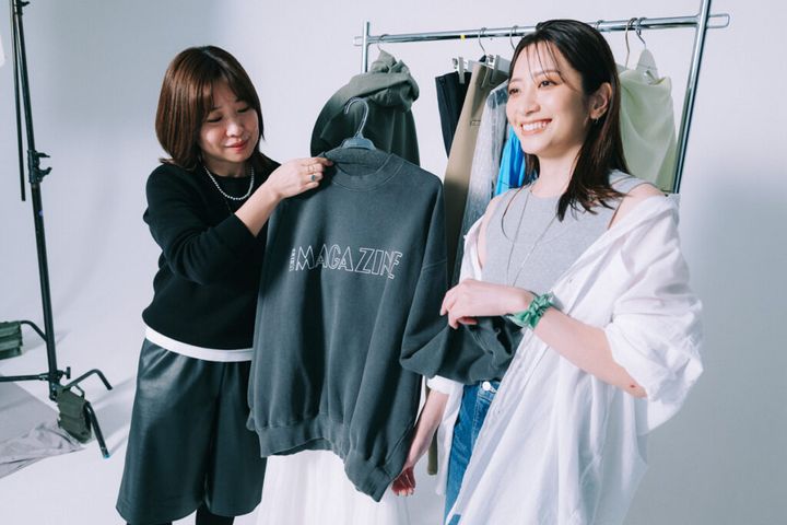 撮影のために用意されたアイテムの中から「このスウェット、すごく好きです」と笹崎さんが選んだスウェット。カジュアルすぎない大人っぽいコーデに仕上げるためのコツ、教えてスタイリスト平沼さん!