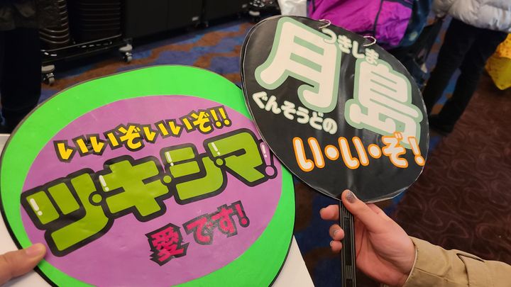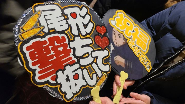女子高生2人組が作った”二話尾”のうちわ。「祝福させて!!」