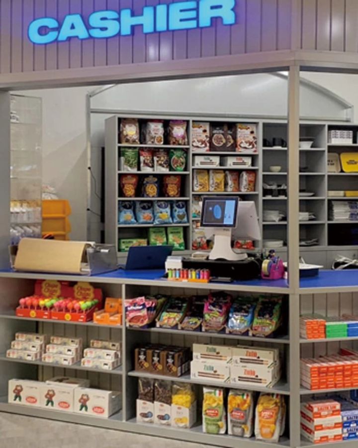 英字ロゴやハングルを使ったPOPなパッケージ雑貨や服、お酒、フードやドリンクまでそろう総合ショップ。MVセットのような映える店内は写真スポットとしても楽しめるはず。