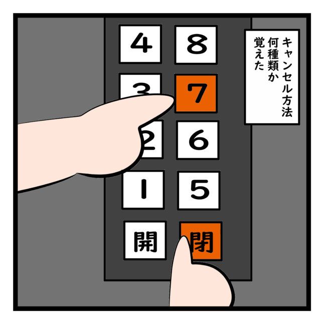 発見したキャンセル方法は、「閉めるボタンとキャンセルしたい階数ボタン押す」