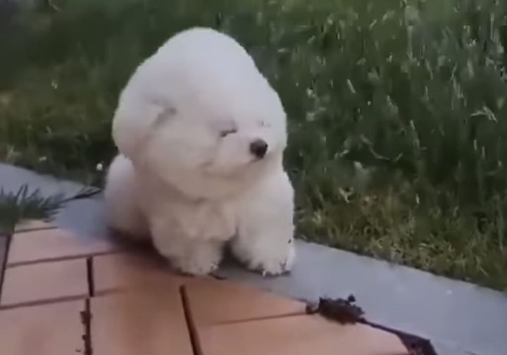 3. 強風で頭がぷるんぷるん揺れる(笑) 風で顔の形が変わっちゃうモコふわ犬