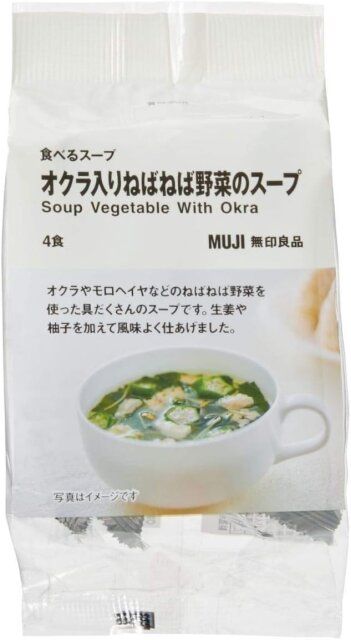 ネットやSNSでも話題の、無印良品の食べるスープ。中でも、オクラやモロヘイヤなどのねばねば野菜を使ったこちらのスープが人気です!