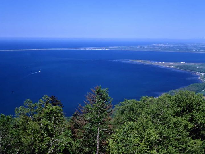 「サロマ湖」は、北海道北東部に位置する、東西に長い北海道で一番大きな湖です。海水と淡水の中間の塩分を持つ「汽水湖」で、ホタテ・カキ・ノリなどの養殖が行われています。この湖のほぼ中央にある幌岩山の山頂からは、広い湖を一望することができます。ここには展望台が設置されており、サロマ湖の全容はもちろん、オホーツク海と湖を隔てる砂嘴(さし)や知床連山なども見渡せますよ。
