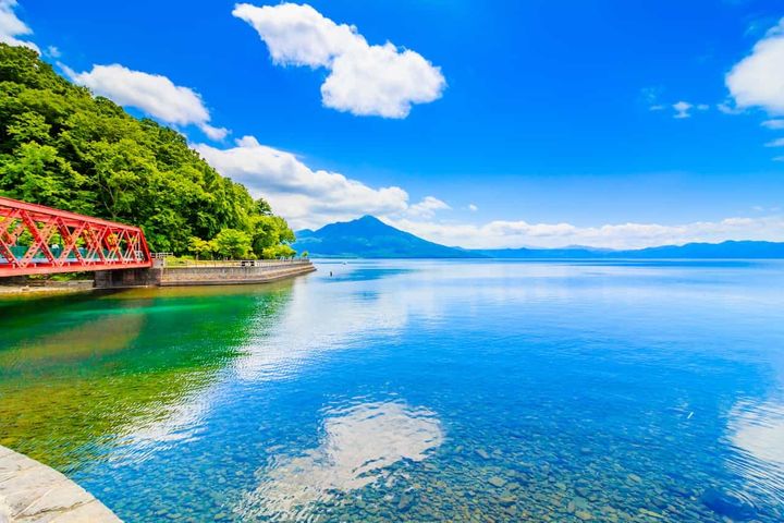 千歳市西部にあるカルデラ湖「支笏湖」は、日本最北の冬でも凍らない湖で、支笏洞爺国立公園の中央に位置します。田沢湖に次ぐ日本第2の深度を誇り、最深部は360.1mです。さらに日本有数の水質で、澄んだ水が光に照らされることで「支笏湖ブルー」といわれる青色に輝きます。