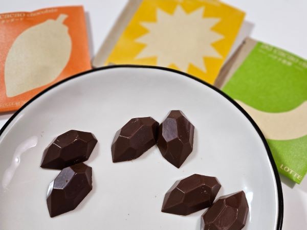 ロッテではパプアニューギニアでカカオの栽培・発酵・乾燥に至るまで様々な研究に取り組んでいます。その取り組みから生まれたカカオ豆を使ったチョコレートです。