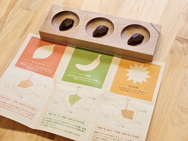 同じパプアニューギニアのカカオ豆でも発酵や乾燥方法を変えることで、それぞれの香りに個性があります。3種類を食べ比べると、その香りと味わいの違いがはっきりと分かり、驚きました。口の中で、ゆっくりと溶かしながら味わえるチョコレートの形状なので、よりその違いを感じることができました。