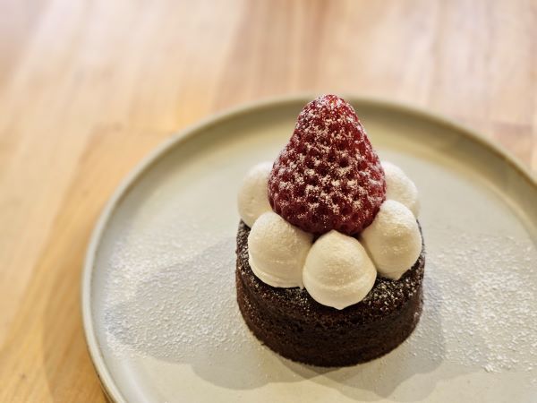 イートイン限定で、店内で焼き上げた、とろっと濃厚なフォンダンショコラと、軽い口あたりのホイップクリームのマリアージュを楽しめます。
