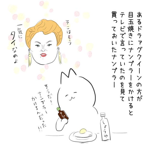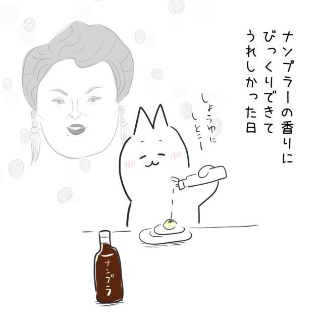 あるドラァグクイーンの方が、目玉焼きにナンプラーをかけるとテレビで言っていたのを見て買っておいたナンプラー。