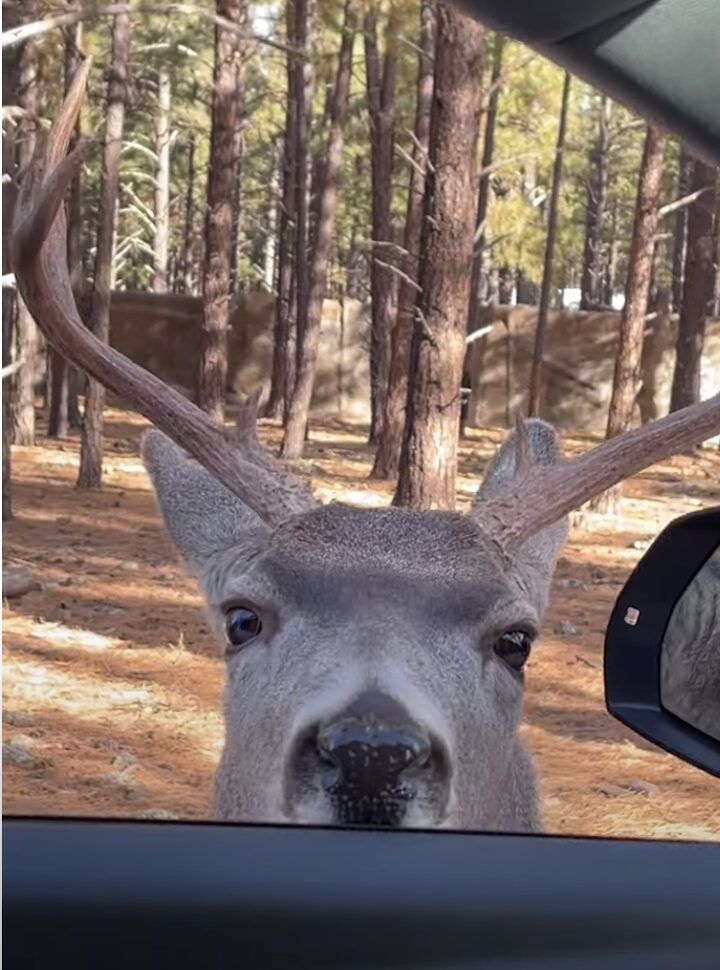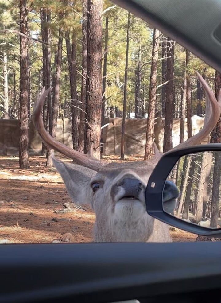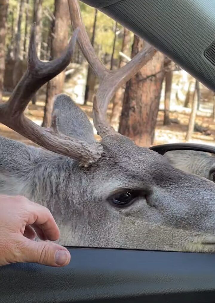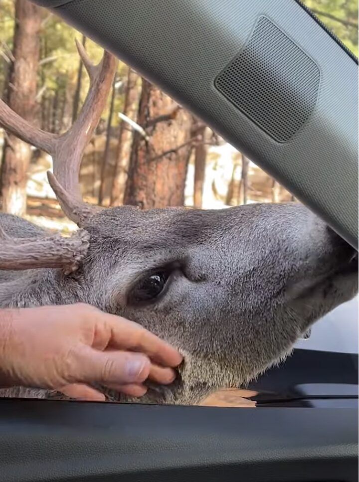 3. 野生動物とは思えない人懐っこさ!シカが車に近寄ってくると・・なでてアピールしてきた!!【アメリカ・動画】