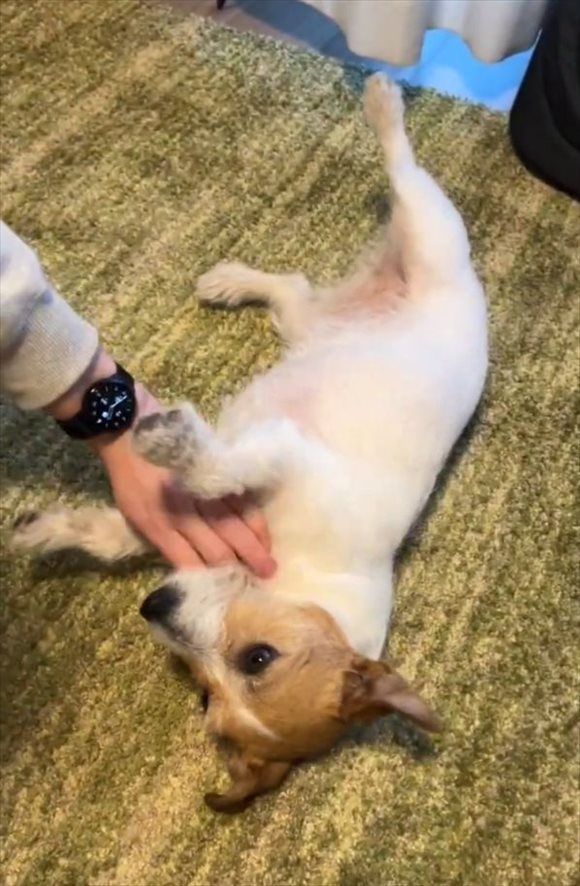 甘えるのが上手なジャックラッセルテリア。 飼い主さんに頭をナデナデしてもらっていたところ、おなかもナデナデしてほしいな~と思ったみたいです!! そんな甘え上手な姿がかわいいと話題になっています!