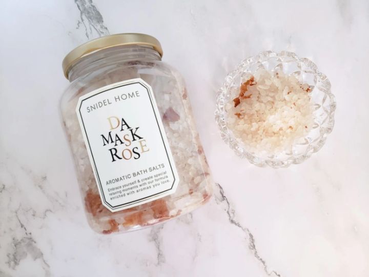 バスソルトをお湯に入れると、ピンクや赤の花びらとともに、ダマスクローズの優雅で華やかな香りがふわっとバスルームに広がります。リッチな香りで心までじっくり解きほぐされ、幸福感に包まれる感覚に♡自宅のお風呂でラグジュアリーな気分を楽しめるのが何よりの魅力です!
