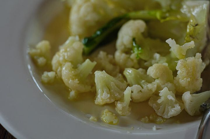 固くて重たい、真っ白なカリフラワーを見つけたら、ぜひこのレシピで。オレンジや紫のものを使ってもきれいなひと皿になります。