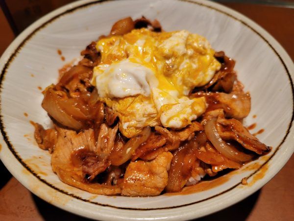 豚ソース丼 850円 やっぱり、豚バラ肉と玉葱と玉子は最高の組み合わせでしょう!これは外せない!それと、何故か、お好み焼き・焼きそば・鉄板焼き屋さんに来ると、炭水化物+炭水化物が食べたくなるるなるなです。