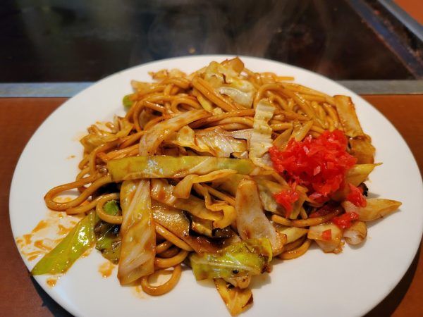いかそば 860円 出来立てのイカ入りやきそばです!キャベツがたっぷり入っていますね。やきそばにはぼん繁自慢の本田ソースがたっぷりとかけられています。懐かしいような初めてのような本田ソースがとってもおいしいです。