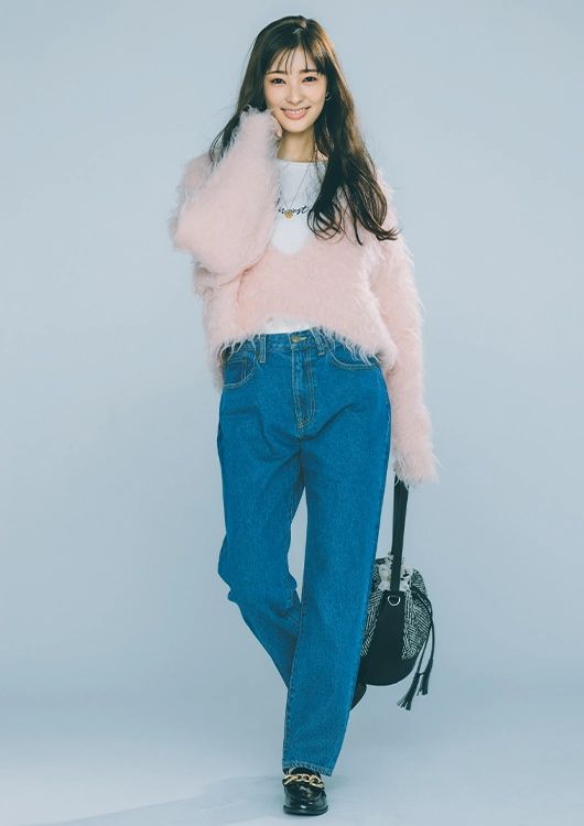 表情のあるもけもけニットだからデニム合わせが間違いなし