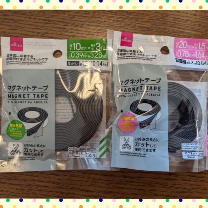 ラミネート加工したものに、百均の磁石テープを貼り付けています。