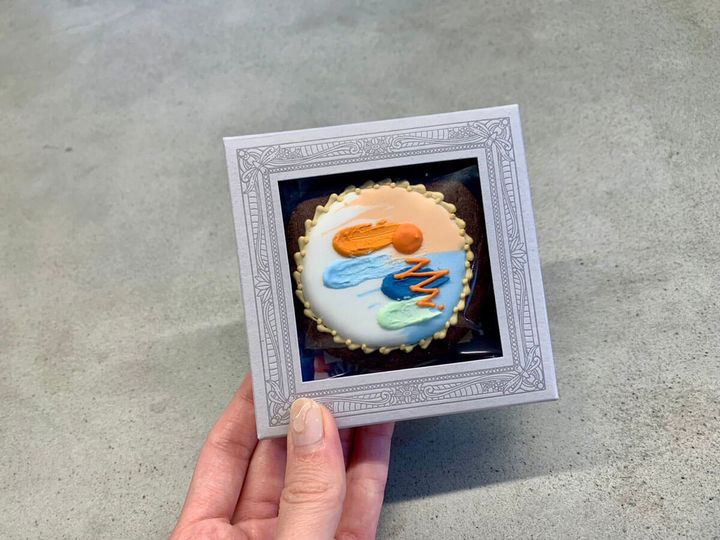 名画をモチーフにしたアイシングクッキーです! ひとつひとつ手作業で作られているようで、とっても可愛い♡ 写真はクロード・モネが描いた「印象・日の出」のモチーフクッキーです。ココアの生地でとてもおいしかった……! 手土産にしても喜ばれそうです♪