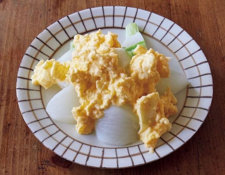 塩麹は、卵料理と相性抜群! たんぱく質を分解するので、堅くならずにふんわり仕上がります。スクランブルドエッグなら、溶き卵2個分に対し、塩麹大さじ1/2(約10g)を目安に。好みで牛乳、こしょうを加えて混ぜ、バターで炒めて。卵焼きに加えるのも◎。