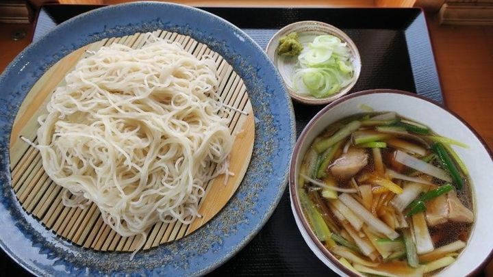つけ汁はしょうゆベースの濃いつゆに鶏肉と長ネギ、ゆずの皮がたっぷりと入っています。