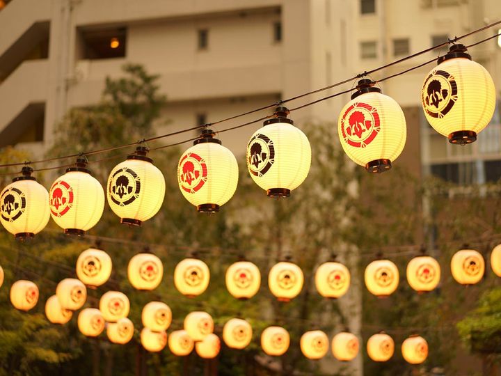 仲通りを飾る、特徴的な⾊とりどりの提灯。柔らかな光の下を歩く彼の横顔をなんとか観察する。