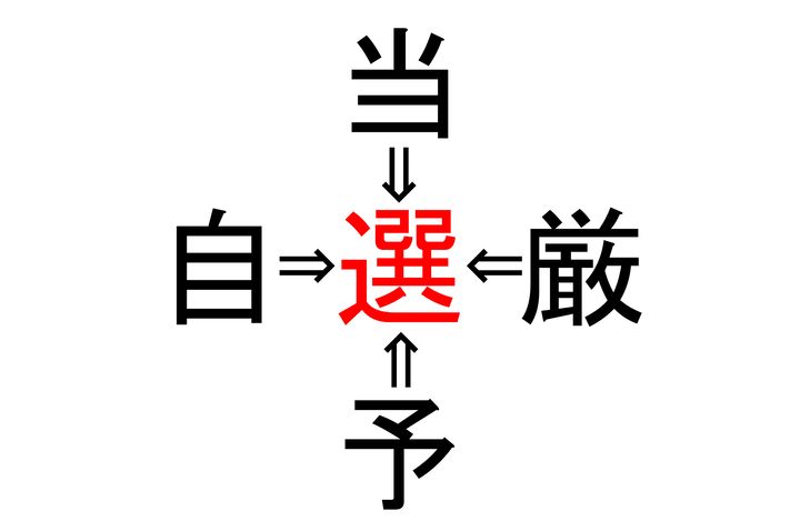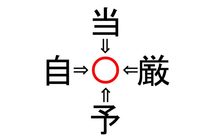 当〇・厳〇・予〇・自〇。 4つの〇に入る漢字は共通しており、それぞれ熟語を形成します。